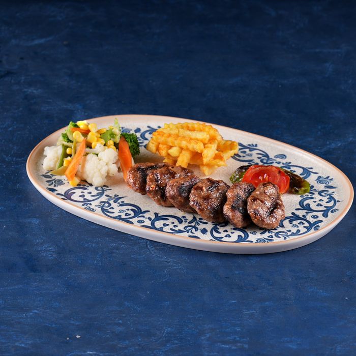 Izgara köfte, Közlenmiş domates, Közlenmiş yeşil biber, Sebze mix, Patates cips